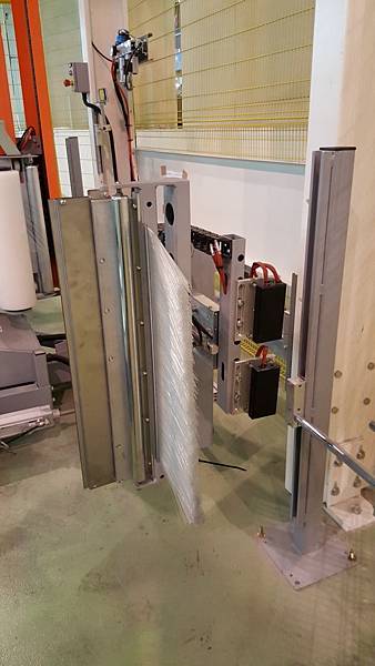 三。 膠膜機頭與夾膜系統: 出膜桿的傾斜設計可使商品下緣包裝更完美