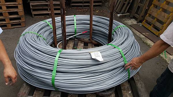如下圖中線材重約1500公斤, 只需打6條PET帶就能固定完成。