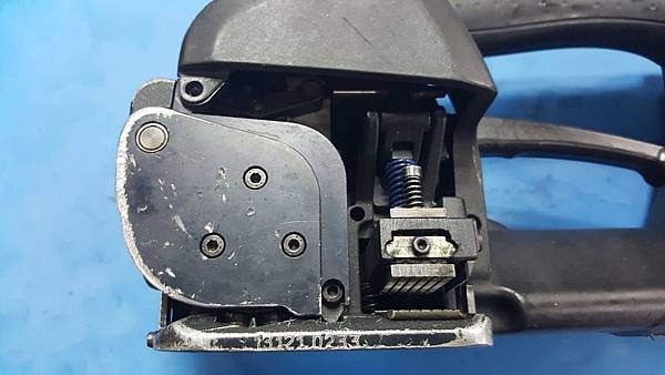 七。 簡易清潔方式:此部分是平時使用打包機後做的簡易清潔,利用噴槍將機構內的帶削吹出,