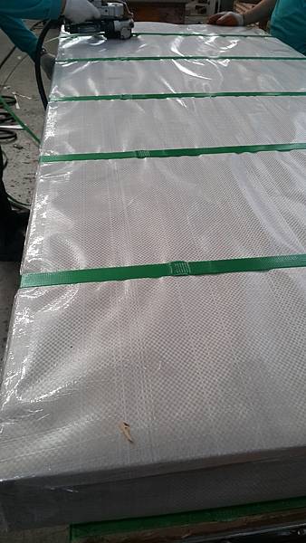 鋼板長230公分寬130公分,為了 安全特地為客戶規劃打包距離約46公分打一條PET帶,