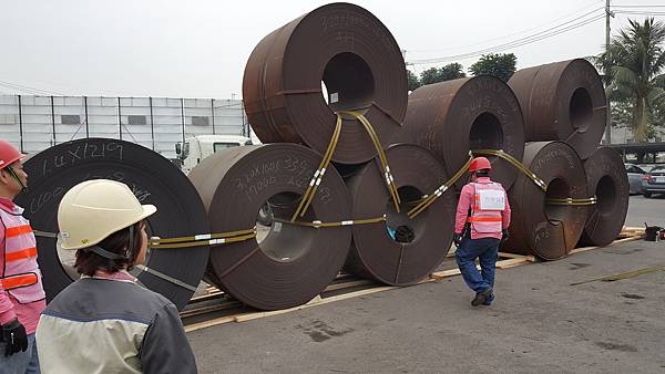鋼捲疊法有經過試算, 避免在海上載運中發生斷帶或鋼捲位移