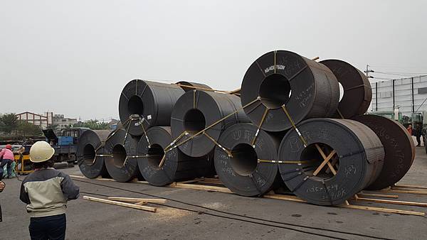 這次要打包鋼捲耗材由鋼鈑工業提供, 烤漆高抗拉的打包鋼帶